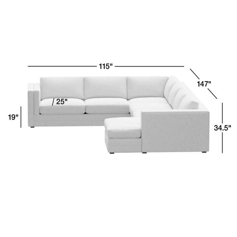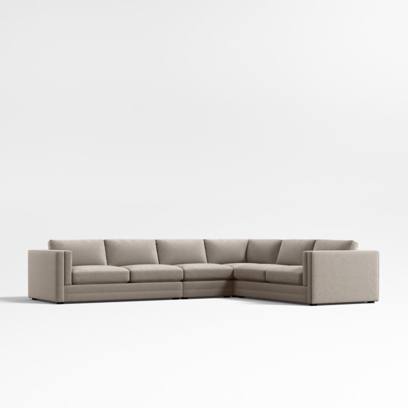 A new comfort classic. Our Lakeview sectional sofa is all about timeless tailoring and sustainably sourced FSC®-certified wood. And it sits a little higher for everyday ease. Designed with clean lines, welted tailoring, cozy double arm cushions and pillowy seat cushions, the four-piece combination—right- and left-arm sofas, armless chair and corner—creates a comfy retreat the whole family will enjoy. Lakeview is classic and versatile in Winsome, a fabric handwoven of 100% recycled polyester with an ultra-soft hand and remarkable durability. Also available to order in 200+ more fabrics, including family-friendly options.