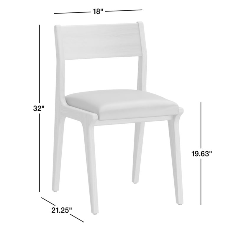 Designed to coordinate with our Lakin dining table, this side chair is a true classic that can sit with any table in our collection. Solid teak stars in the graceful mix of curves and lines seen in the tapered legs, angled back and slanted stance. The inset cushion is covered in sleek black leather as a modern complement to the frame's warm wood tones. The Lakin teak wood dining chair is a Crate & Barrel exclusive.