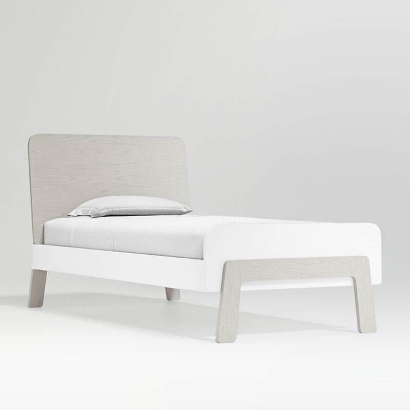 Versatile and neutral, our Lamont Twin Bed features a light grey wash stain that contrasts with the white finish for a modern two-tone look. The bed's high headboard is perfect for reading books before lights out. Plus, the hidden storage compartment behind the headboard provides a unique way to store their favorite bedtime stories, the toys they love and maybe even a secret treasure or two.