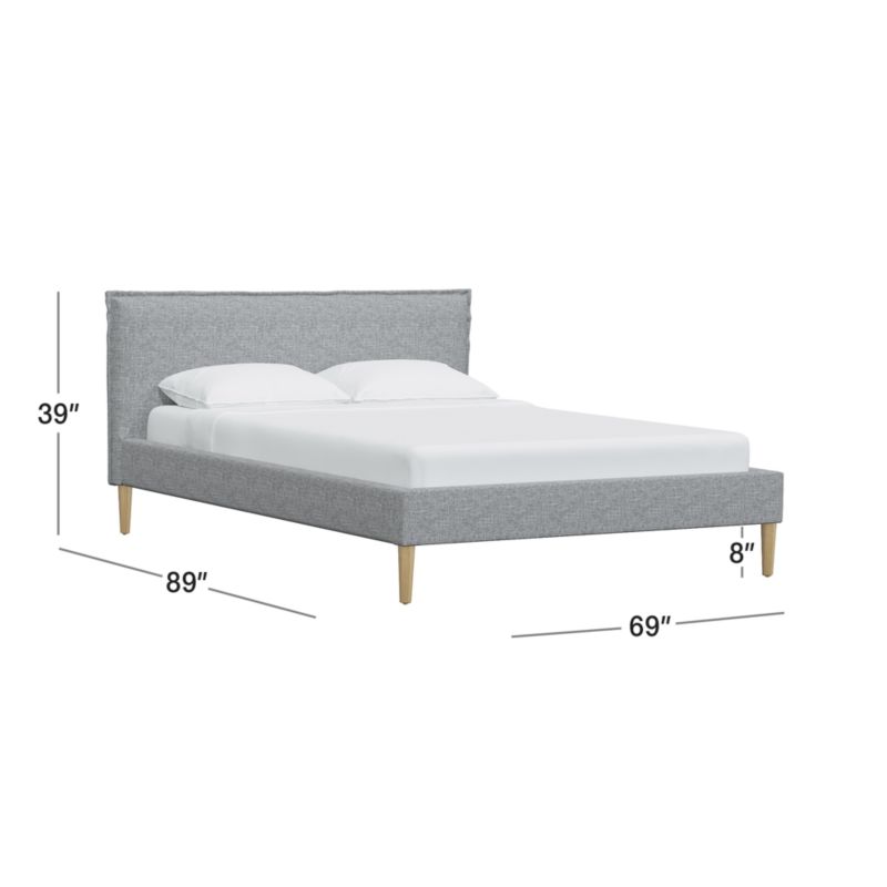 Upholstered by hand in marled grey and white textured linen-blend fabric, our Lane low-profile bed offers inviting comfort and crisp tailoring. Conical ash wood legs with a natural finish legs elevate the upholstered platform, and French-seamed edges detail the padded headboard that's ideal for reading, scrolling and breakfasting in bed. With its fully upholstered back, the bed offers flexibility in your bedroom arrangement. Lane keeps the look low and modern, with no need for a box spring. Our Lane pumice-grey linen bed is a Crate & Barrel exclusive.