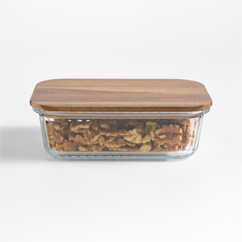Large Plisse Glass Rectangular Storage Container with Wood Lid by Laura Kim