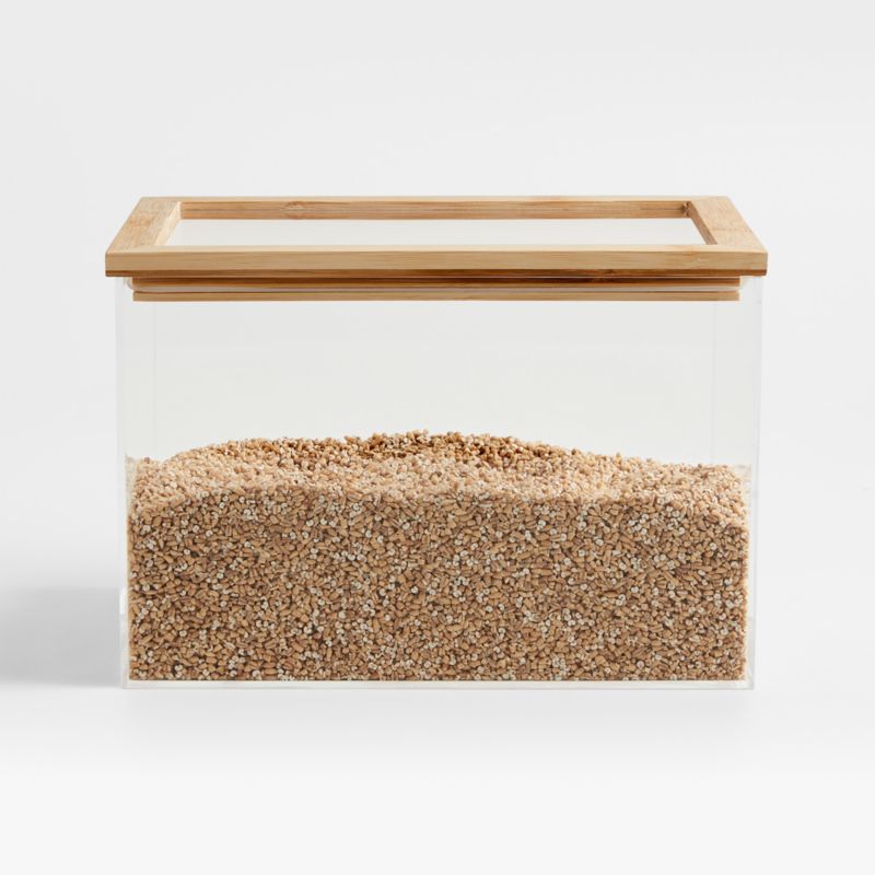 • Crate & Barrel Medium Rectangular Acrylic Kitchen Pantry Storage Container with Bamboo Lid