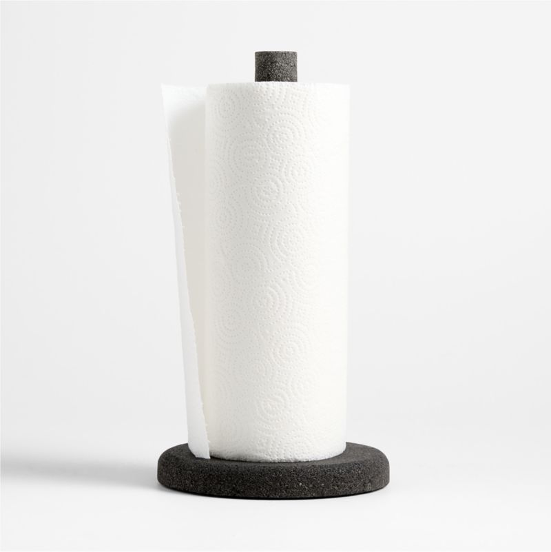 This sculptural paper towel holder crafted of lava stone elevates a kitchen essential into a display-worthy statement piece. The dark grey rod keeps a roll upright and at the ready, and the weighted base prevents the holder from tipping over as you unroll and rip. We love the modern design language the exaggerated curves bring to the countertop.