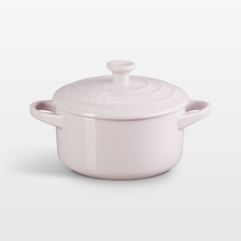 Bake and serve individual servings of pot pie, potato gratin or berry cobbler in charming style with this mini cocotte. Inspired by shallots, creamy blush-purple enamel coats the baking dish. The pastel glaze seals the dense stoneware, blocking moisture absorption to prevent cracking, crazing, scratches and stains. The lid locks in moisture, while the nearly non-stick interior effortlessly releases food and cleans up easily. This round cocotte goes from oven to table for a warm and welcoming presentation of entrees, desserts, baked dips and more.