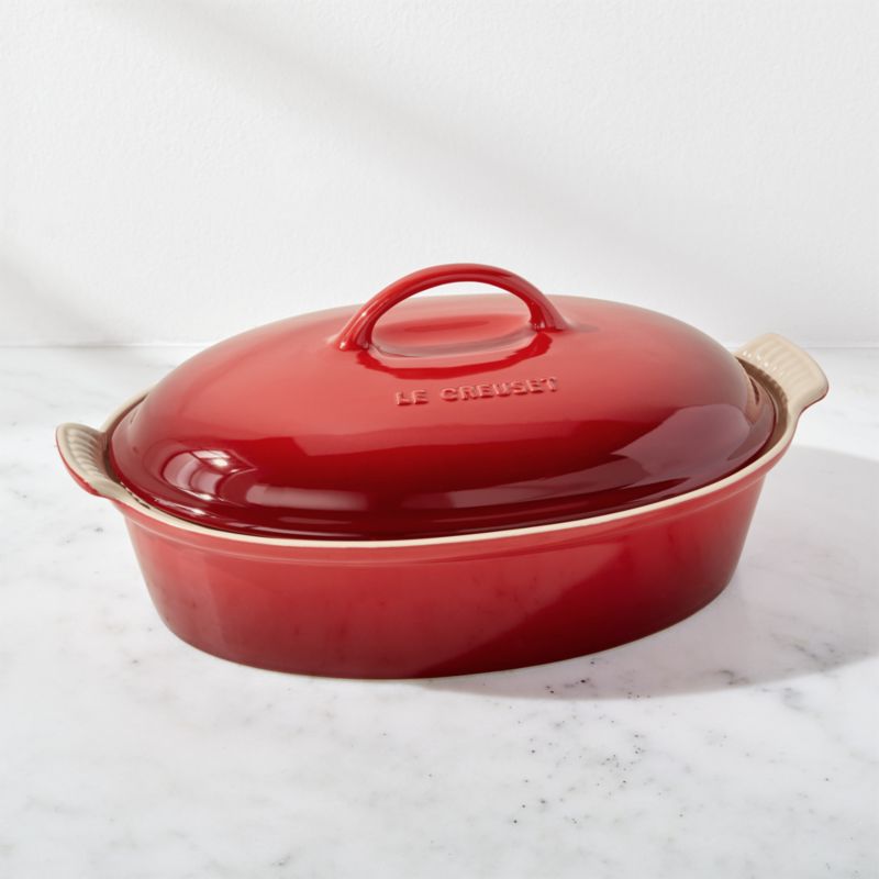 A hardworking lidded casserole and serving dish in one, all rendered in Le Creuset's legendary enameled stoneware. You can bake, broil, and roast with confidence since the stoneware maintains even temperature, prevents scorching and is virtually nonstick, then present your creation with pride in a dish that looks as good as it cooks. This best-selling hue, which deepens and darkens toward the edges of the dish and its lid, was christened Cerise by the master enameller who created it, inspired by irresistible cherries. Revered by both professional chefs and home cooks since its 1925 debut, Le Creuset's classic French cookware is prized for its utilitarian beauty and unsurpassed heat retention.