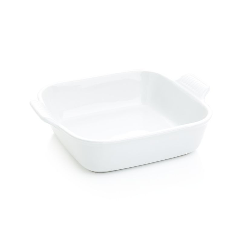 As beautiful as it is functional, this square baking dish delivers superior performance in the oven or microwave and is ideal for baked goods and roasted dishes. The square baker in classic white bakes up bread, casseroles and more, bringing Le Creuset style to the kitchen and table. Crafted of dense stoneware and glazed with enamel, the dish blocks moisture absorption to prevent cracking and crazing. The nearly non-stick enamel finish effortlessly releases foods and resists scratches and stains. Revered by both professional chefs and home cooks since its 1925 debut, Le Creuset's classic French cookware is prized for its utilitarian good looks and unsurpassed heat retention.