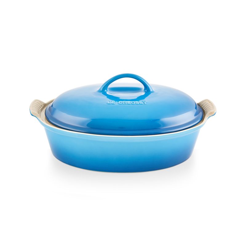 A hardworking lidded casserole and serving dish in one, all rendered in Le Creuset's legendary enameled stoneware. You can bake, broil, and roast with confidence since the stoneware maintains even temperature, prevents scorching and is virtually nonstick, then present your creation with pride in a dish that looks as good as it cooks. Marseille is a bright, bold blue that deepens and darkens toward the edges of the dish and its lid. Revered by both professional chefs and home cooks since its 1925 debut, Le Creuset's classic French cookware is prized for its utilitarian beauty and unsurpassed heat retention.