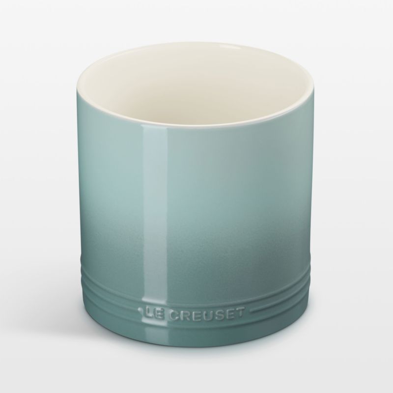 This timeless crock keeps essential utensils right at hand (and coordinates with your favorite Le Creuset cookware). Embossed with the company's iconic ringed design, the large-capacity stoneware vessel offers plenty of space for all of your go-to cooking tools. The porcelain glaze in an ocean-inspired gray-green-blue hue resists cracking, crazing, chipping, scratching and staining so the crock always looks its best.