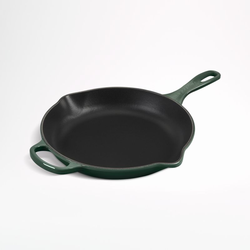 In a deep shade of green inspired by artichokes, this cast iron skillet is clad in smooth enamel, rendering each piece impervious to acid, alkali, odors and stains. The non-reactive cooking surface does not require seasoning, and the frying pan is compatible with all types of stovetops including induction.