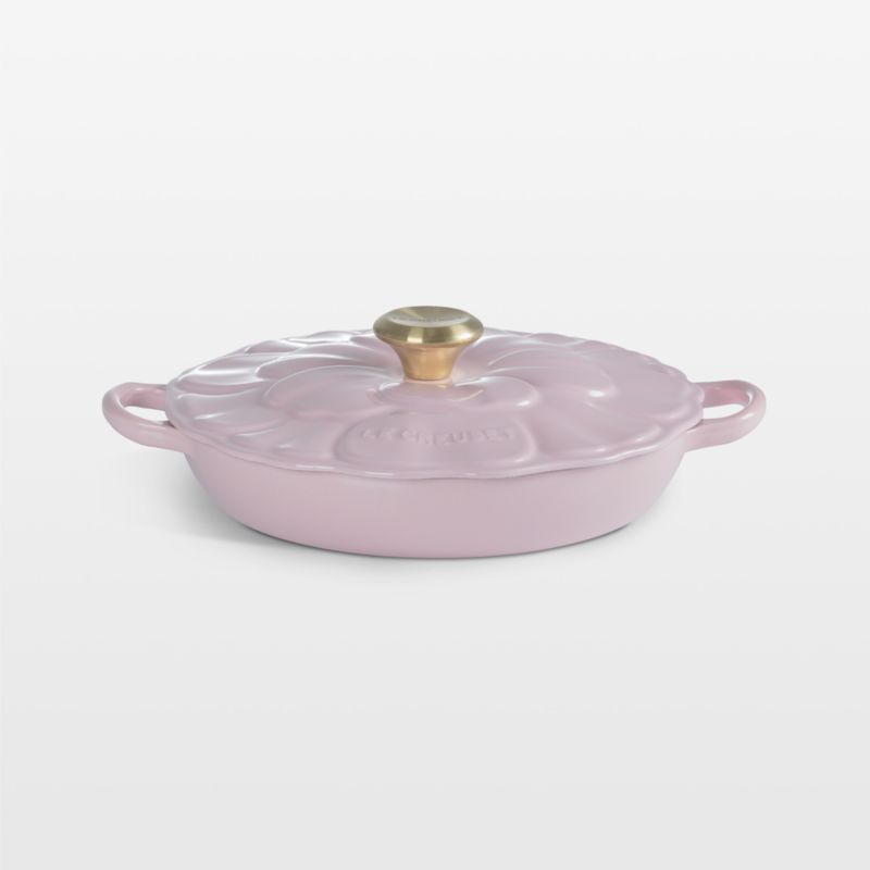 Enameled in ballet-inspired pink and featuring a petal-embossed lid inspired by the French anemone flower, Le Creuset's brasier graces kitchens with springtime style as it cooks up all your favorite dishes. The cast iron retains and distributes heat optimally, while the durable enamel coating renders the pan impervious to stains, chips and cracks. Designed with double handles for beautiful balance, the versatile pan lends itself to braising as well as browning, sauteing and baking. The close-fitting lid creates a blanket of heat for even cooking. Going from stove to oven to table for serving spring brunches, Easter dinner and festive meals anytime of year, this braiser makes a stunning addition to a Le Creuset collection.