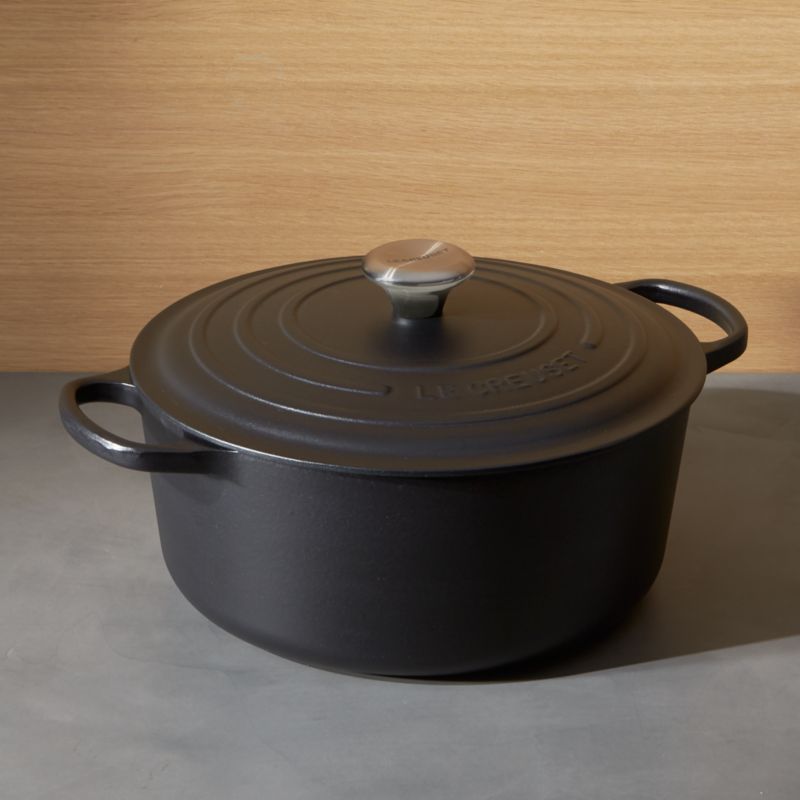 Revered by both professional chefs and home cooks since its 1925 debut, Le Creuset's classic French cookware is prized for its utilitarian good looks and unsurpassed heat retention. In a chic matte black that suits modern kitchens, our cast iron cookware is clad in smooth enamel, rendering each piece impervious to acid, alkali, odors and stains. Non-reactive cooking surface does not require seasoning. Compatible with all types of heat sources, from gas and electric stoves, to ceramic and glass cooktops, to induction and halogen, the Dutch ovens are topped with stainless steel knobs on their lids.