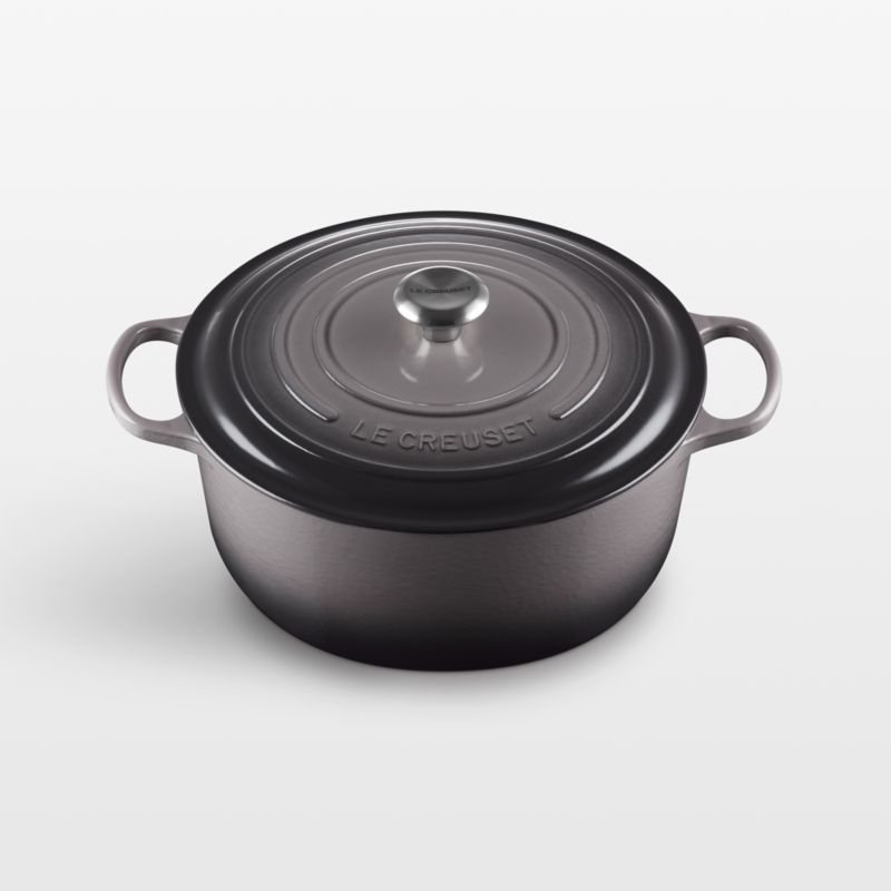 Enameled in warm, creamy grey inspired by oysters, this cast iron Dutch oven is indispensable for slow-cooking, braising, searing, roasting or baking. The pot has a smooth interior that promotes caramelization, resists stains and prevents sticking for easy cleanup. The cast iron maintains even and consistent heat, while the tight-fitting lid seals in moisture. Generously sized to cook nine or more servings, the Dutch oven is ideal for serving a crowd. Use it for whatever's on the menu, be it clam chowder, roasted chicken or sourdough bread.
