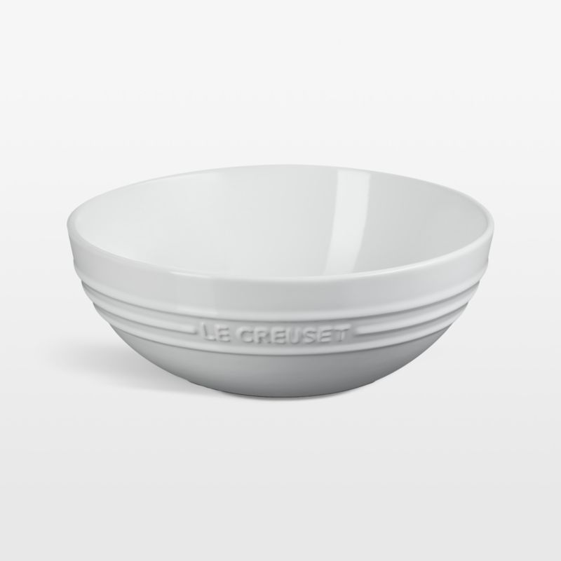 Revered for its chef-inspired enamel cookware, Le Creuset introduces a premium stoneware serving collection. This white bowl is crafted with the same durable glaze and concentric-ridge detailing found in the celebrated cookware. Perfect for salads, sides, bread rolls or fresh fruit, the classic serving bowl suits everyday meals and special occasions.