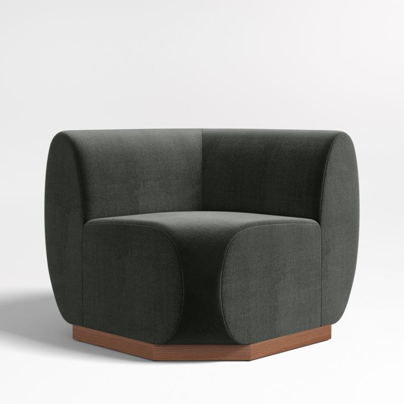The best seat in the house, now with a squared corner. Leandro brings home the luxe feel of VIP fine dining with its soft faux-mohair upholstery in a dark grey. Waterfall curves give the banquette's tight seat and back a graceful look, while oversized cushions dominate the design and anchor your dining room or kitchen with contemporary style. Supportive foam cushioning holds its shape for many dinner parties to come, wrapped in soft fiber for comfort. Combine the corner banquette with the Leandro single and bench banquettes for a custom arrangement to suit your space.