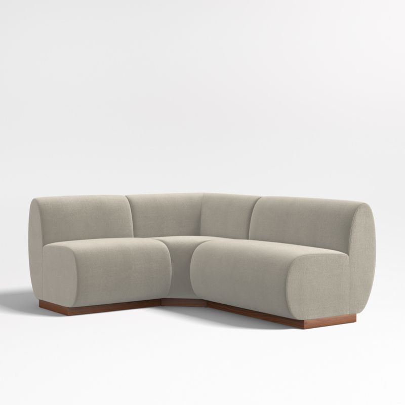 The best seat in the house. Leandro brings home the luxe feel of VIP fine dining with its soft faux-mohair upholstery. Waterfall curves give the L-shaped banquette's tight seat and back a graceful look, while oversized cushions dominate the design and anchor your dining room or kitchen with contemporary style. Supportive foam cushioning holds its shape for many dinner parties to come, wrapped in soft fiber for comfort. The three-piece banquette consists of one bench, one single and a corner chair.