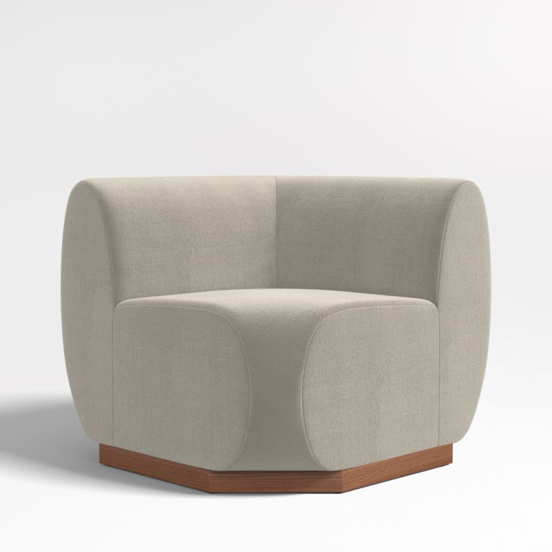 The best seat in the house, now with a squared corner. Leandro brings home the luxe feel of VIP fine dining with its soft faux-mohair upholstery in light tan. Waterfall curves give the banquette's tight seat and back a graceful look, while oversized cushions dominate the design and anchor your dining room or kitchen with contemporary style. Supportive foam cushioning holds its shape for many dinner parties to come, wrapped in soft fiber for comfort. Combine the corner banquette with the Leandro single and bench banquettes for a custom arrangement to suit your space.