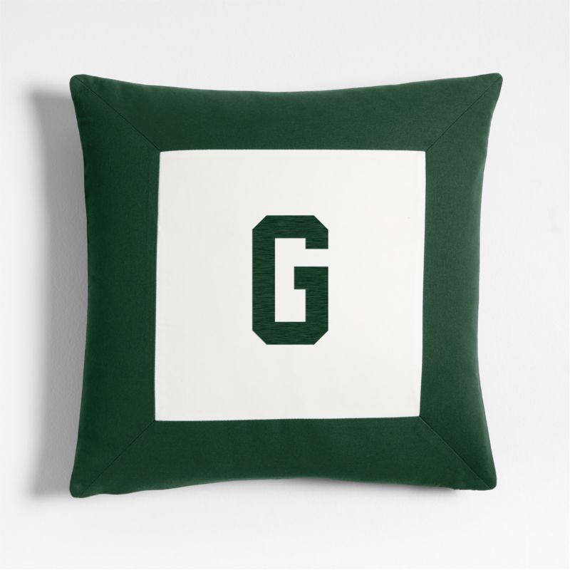 Made to be monogrammed, these boldly bordered pillows add the perfect midcentury modern accent to your bed, sofa or armchair. Organic cotton weaves supersoft twill in a fresh palette, neatly framing a crisp white square that's perfect for an oversized embroidered initial. We especially love the classic collegiate look of a personalized Legacy Border pillow on a dorm room bed. Our exclusive monogrammable throw pillows include your choice of a plush feather-down or lofty down-alternative insert.