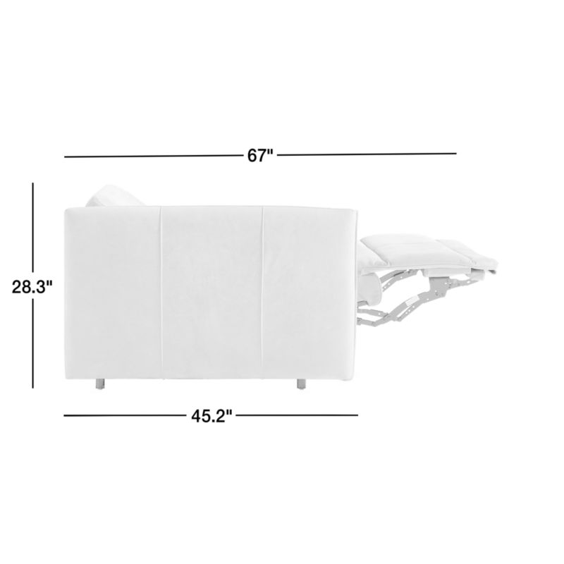 Leisure provides all the comfort of the traditional recliner, updated to a design that's pure Crate & Barrel. Modernized with a shelter back, slim arms and tight cushioning for a comfortable sit, the chair doesn't disappoint in the comfort department. In fact, the independently operating back and footrest promise endless lounging positions, with control buttons located out of view on the inner side of the seat to keep the look clean. Sleek, supple top-grain leather in whiskey brown helps you make the most of your well-deserved leisure time.