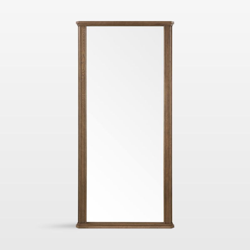 Architecturally inspired Leon brings a stately look to any room. Made of solid oak, the mirror showcases woodworking details in the upright columns with reed accents, tiered chamfered top and plinth base. A warm umber finish highlights the wood grain of this statement-making floor mirror.
