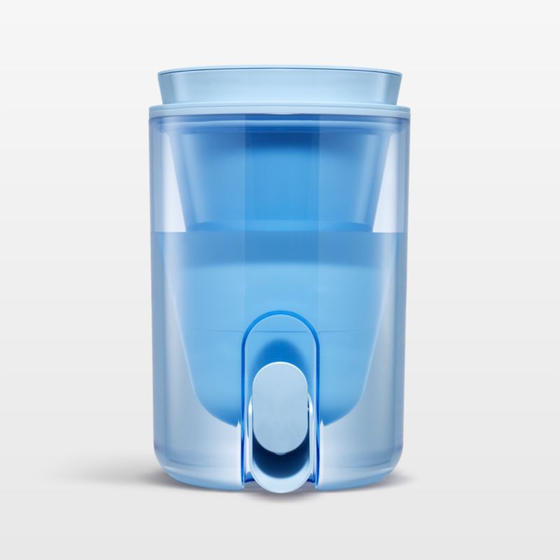 Keep filtered water on tap with this sleek dispenser. The easy-slide lid holds two powerful filters. The membrane microfilter removes bacteria, parasites and microplastics, filtering 264 gallons of water for a full year of healthy, clean water. An activated carbon and ion exchange filter reduces chlorine, heavy metals, PFAS and unpleasant odors, ensuring two months of delicious drinking water. The filters remove undesirable elements without filtering out essential minerals such as magnesium, potassium, carbon and sodium. Designed with a sleek round shape in Iceland-inspired blue, the water filter dispenser fits easily into your refrigerator for convenient hydration.