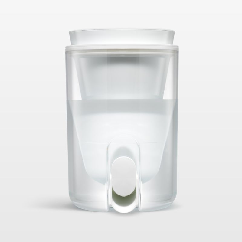 Keep filtered water on tap with this sleek dispenser. The easy-slide lid holds two powerful filters. The membrane microfilter removes bacteria, parasites and microplastics, filtering 264 gallons of water for a full year of healthy, clean water. An activated carbon and ion exchange filter reduces chlorine, heavy metals, PFAS and unpleasant odors, ensuring two months of delicious drinking water. The filters remove undesirable elements without filtering out essential minerals such as magnesium, potassium, carbon and sodium. Designed with a sleek round shape, the white water filter dispenser fits easily into your refrigerator for convenient hydration.