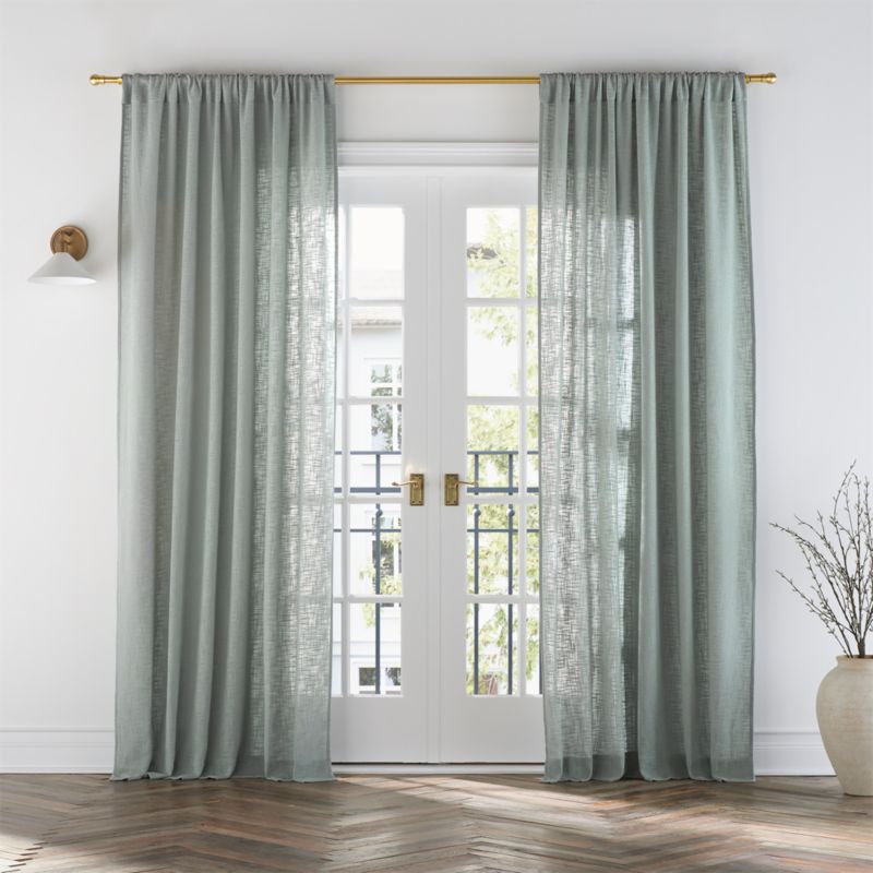 Our Lindstrom curtain panel offers simple elegance with uniquely crafted, three-dimensional texture. Thick and thin slubbed organic cotton yarns in mist blue are woven in a slightly open weave to create an all-over landscape of touchable texture. Sheer enough to filter light beautifully, the fabric hangs with a full-bodied drape. Suitable for any room in the house, the pale blue curtain looks especially coordinated in the bedroom when combined with our Lindstrom bedding.