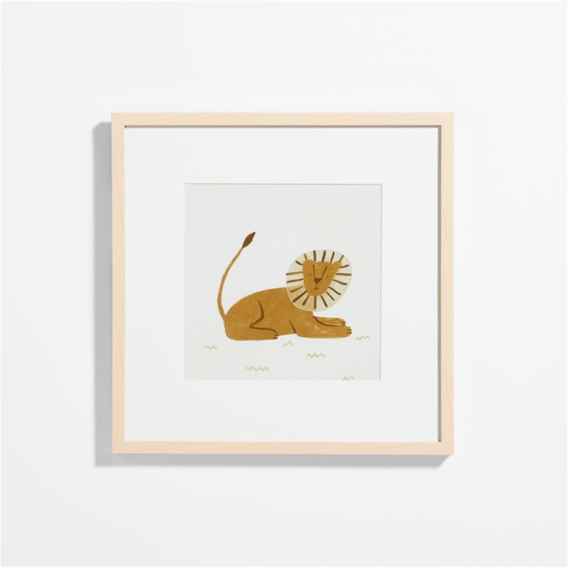 Beautifully illustrated by Chicago-based artist Betsy Siber, this Lion Framed Wall Art has a genial demeanor that's just right for a nursery or playroom. The high-quality giclée print in warm tones of caramel and brown faithfully captures the original brushstrokes and details of the original digital artwork. It's presented with a white mat and a natural wood frame to seamlessly fit into almost any room style. We love it on its own or displayed with some of Siber's other adorable animal prints, as featured in Mandy Moore's nursery.