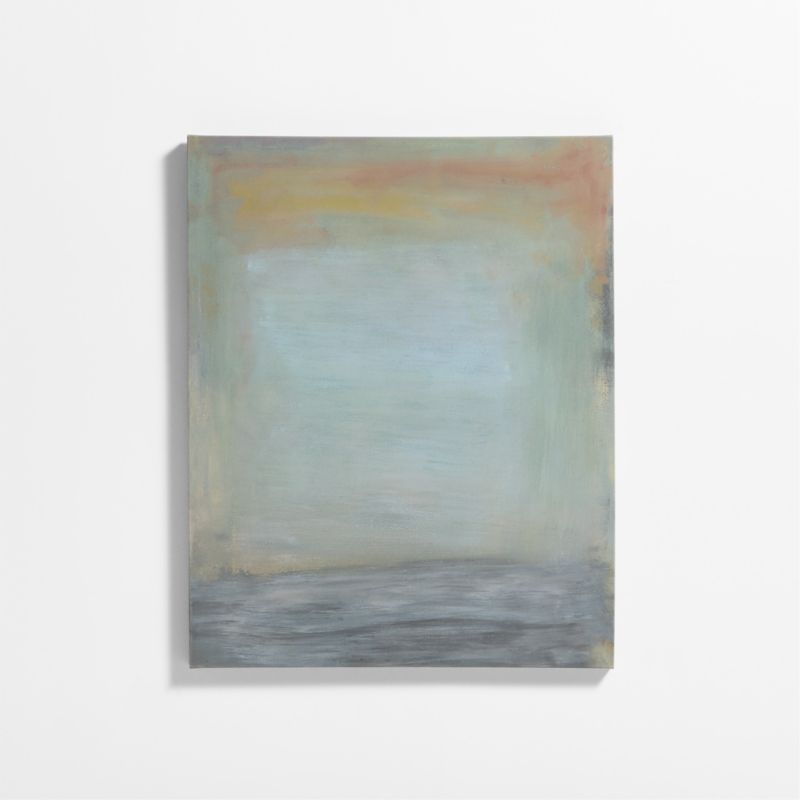 This beautiful print complements any decor with its loosely brushed composition and soft palette of tonal blues with touches of blush and yellow. Hung horizontally it's wonderfully abstract, presented vertically it resembles a sky-forward seascape. Printed on fiber-enhanced canvas, our giclee reproduction is hand-embellished with added texture for a fresh-from-the-studio look. This work of art was selected by Athena Calderone for her exclusive Crate & Barrel collection.