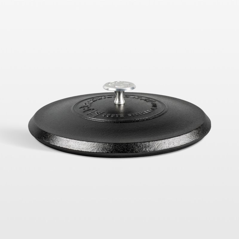 The Blacklock collection updates classic Lodge cast iron cookware for the modern kitchen. Lighter than traditional cast iron, this collection is triple-seasoned for a naturally non-stick finish. This secure lid topped with an aluminum knob locks in moisture and heat, fitting 12-inch Blacklock pans (sold separately). Use the lid to braise pork chops, bake bread and make one-pot meals.