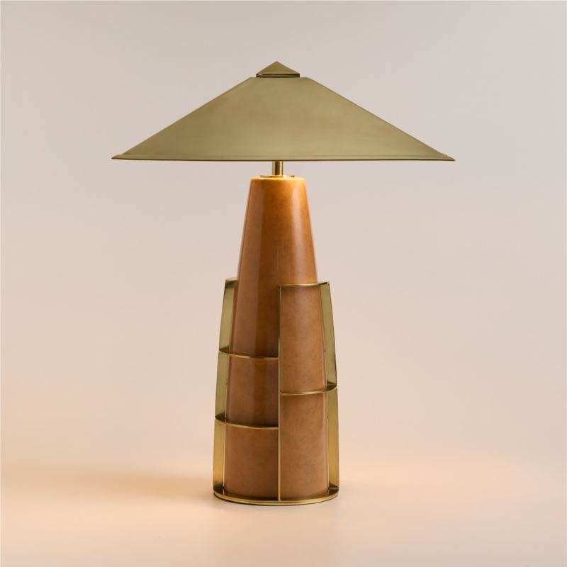 As resident Californians, designers Tiffany Howell and Laura Harrier took inspiration from the warm glow of the Golden State's sunsets in creating the Lola table lamp. A high-gloss lacquer finish inspired by traditional Moroccan tadelakt plasterwork coats the tapered base, segmented by a frame of natural brass. Unlacquered brass also shapes the pyramidal shade, which will develop a fascinating patina over time. A favorite of the designers for good reason, Lola is a stunning piece of jewelry for your home.