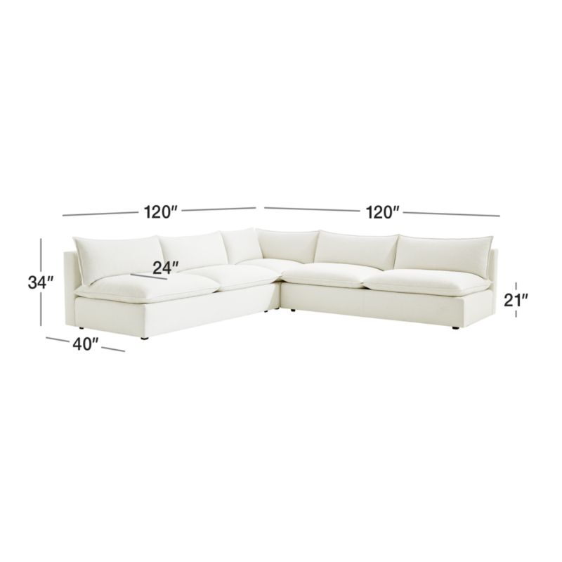 Our Lotus sectional strikes the perfect balance between clean, modern style and cloud-like comfort. Nestled on a low shelter frame, deeply plush pillows are key to the sectional's lounge-worthy luxury, packed with a fluffy down blend and just the right amount of inner support to keep it looking crisp. Just fluff and rotate to keep Lotus looking company-ready. The Lotus Modular 3-Piece Low Corner Sectional is a Crate and Barrel exclusive.