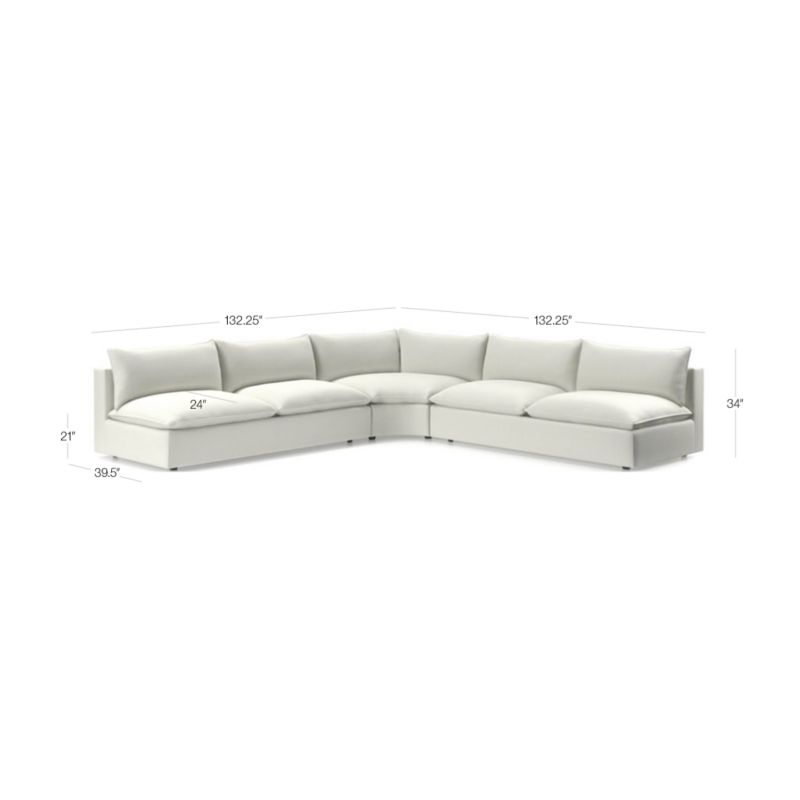 Lotus Deep Modular 3-Piece L-Shaped Wedge Armless Sectional Sofa28height132.25width39.5depthMeasurements are in inches.