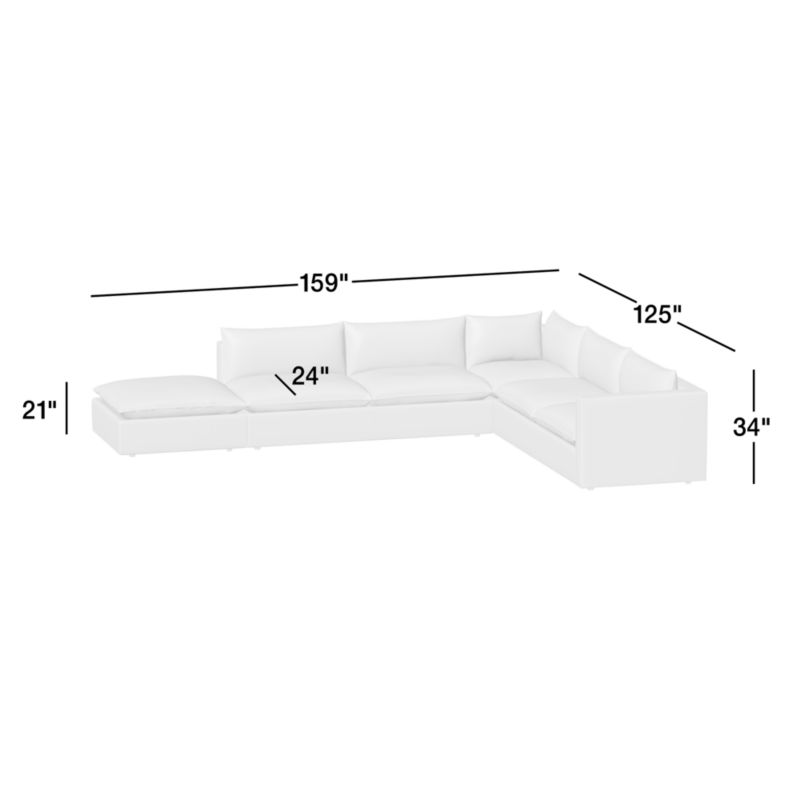Lotus Deep Modular 4-Piece L-Shaped Sectional Sofa with Ottoman34height125width159depthMeasurements are in inches.