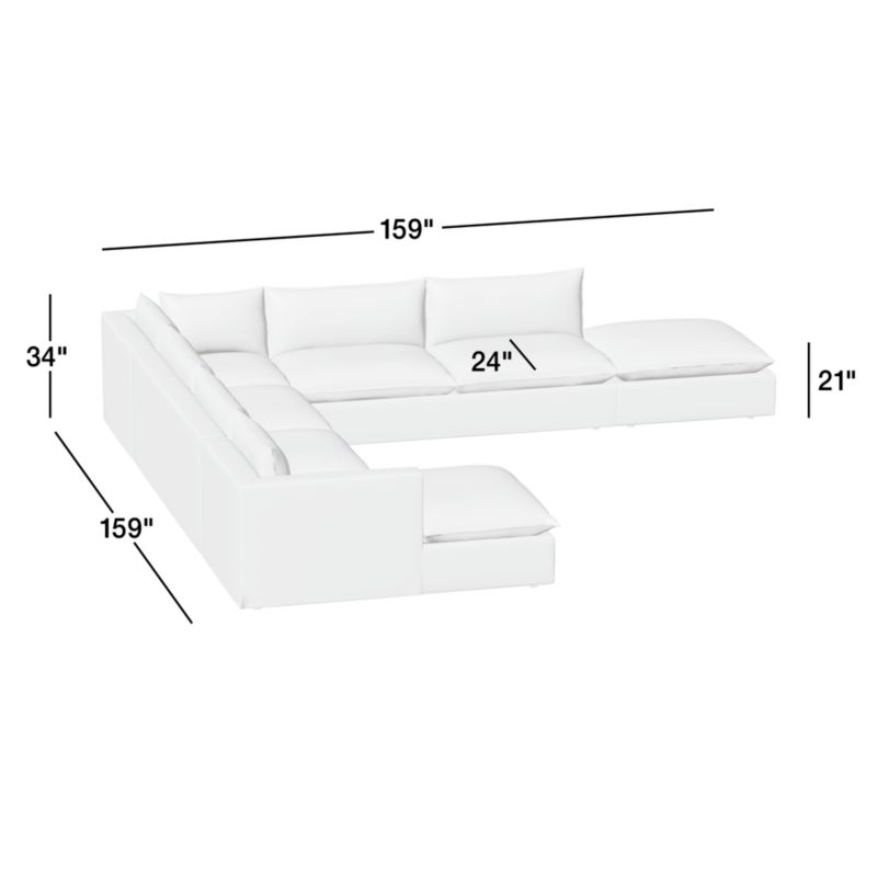 Lotus Deep Modular 5-Piece L-Shaped Sectional Sofa with Ottoman34height159width159depthMeasurements are in inches.