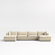 Our Lotus sectional strikes the perfect balance between clean, modern style and cloud-like comfort. Nestled on a low shelter frame, deeply plush pillows are key to the sectional's lounge-worthy luxury, packed with a fluffy down blend and just the right amount of inner support to keep it looking crisp. Just fluff and rotate to keep Lotus company-ready. Ours exclusively, the deep-seated five-piece sectional consists of two corners flanking an armless loveseat and two ottomans that can be moved about for maximum flexibility.