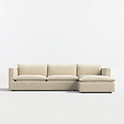Our Lotus sectional strikes the perfect balance between clean, modern style and cloud-like comfort. Nestled on a low shelter frame, deeply plush pillows are key to the sectional's lounge-worthy luxury, packed with a fluffy down blend and just the right amount of inner support to keep it looking crisp. Just fluff and rotate to keep Lotus looking company-ready. The Lotus Modular 7-Piece Low Sectional is a Crate and Barrel exclusive.