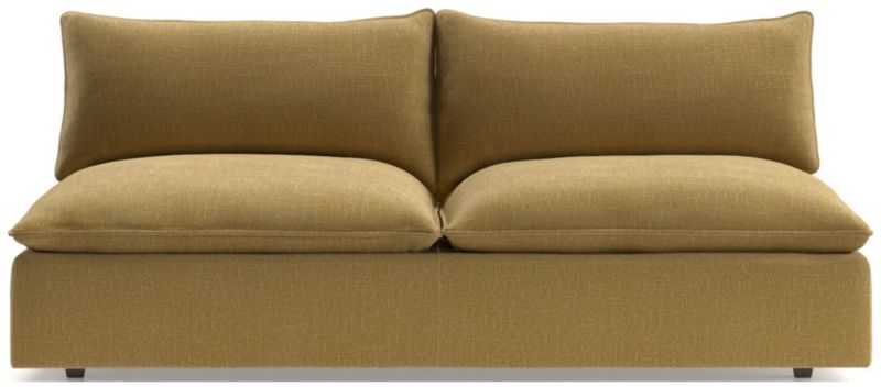 Our Lotus sectional strikes the perfect balance between clean, modern style and cloud-like comfort. Nestled on a low shelter frame, deeply plush pillows are key to the armless loveseat's lounge-worthy luxury, packed with a fluffy down blend and just the right amount of inner support to keep it looking crisp. Just fluff and rotate to keep Lotus looking company-ready. The Lotus Modular Armless Low Loveseat Chair is a Crate & Barrel exclusive.