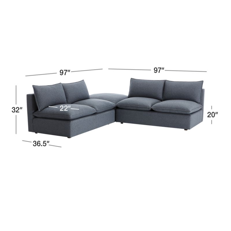 Lotus Modular 3-Piece L-Shaped Armless Sectional Sofa with Ottoman34height97width97depthMeasurements are in inches.