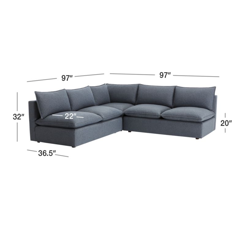 Lotus Modular 3-Piece L-Shaped Armless Sectional Sofa34height97width97depthMeasurements are in inches.