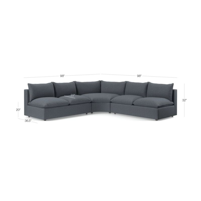 Lotus Modular 3-Piece L-Shaped Wedge Armless Sectional Sofa34height98width98depthMeasurements are in inches.