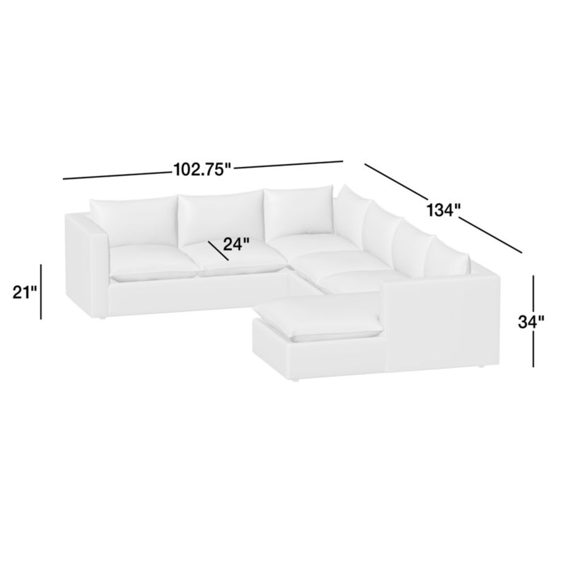 Scaled down to suit smaller-sized spaces, our popular Lotus sectional sofa strikes the perfect balance between clean, modern style and cloud-like comfort. Nestled on a low shelter frame, deeply plush pillows are key to the sectional's lounge-worthy luxury, packed with a fluffy down blend and just the right amount of inner support to keep them looking crisp. Just fluff and rotate to keep Lotus looking company-ready.