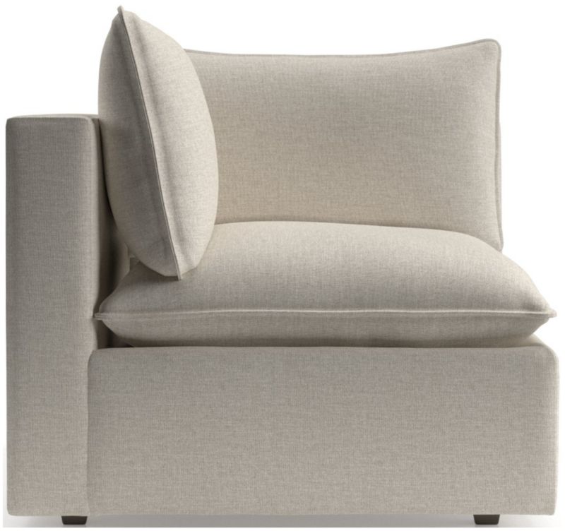 Scaled down to suit smaller-sized spaces, our popular Lotus sectional strikes the perfect balance between clean, modern style and cloud-like comfort. Nestled on a low shelter frame, deeply plush pillows are key to the corner chair's lounge-worthy luxury, packed with a fluffy down blend and just the right amount of inner support to keep it looking crisp. Just fluff and rotate to keep Lotus looking company-ready. The Lotus Modular Low Corner Chair is a Crate & Barrel exclusive.