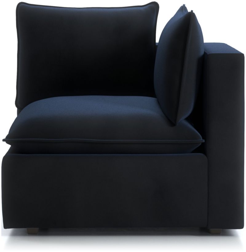Scaled down to suit smaller-sized spaces, our popular Lotus sectional strikes the perfect balance between clean, modern style and cloud-like comfort. Nestled on a low shelter frame, deeply plush pillows are key to the corner chair's lounge-worthy luxury, packed with a fluffy down blend and just the right amount of inner support to keep it looking crisp. Just fluff and rotate to keep Lotus looking company-ready. The Lotus Modular Low Corner Chair is a Crate & Barrel exclusive.