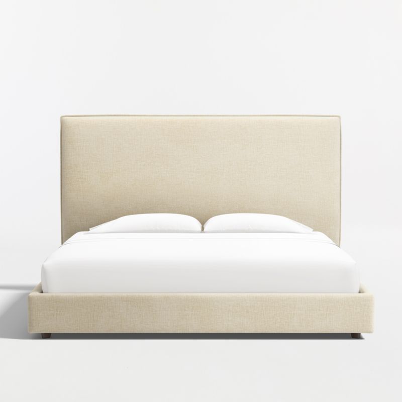 Modeled after our serene Lotus sofa, this bed finds the perfect balance of clean lines and soft simplicity for the modern bedroom. With upholstered rails, a pillow-cushioned headboard, and flange tailoring, the bed has a casual look that invites reading, reclining and, of course, sleeping. The Lotus Tall Bed is a Crate and Barrel exclusive.