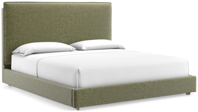Modeled after our serene Lotus sofa, this bed finds the perfect balance of clean lines and soft simplicity for the modern bedroom. With upholstered rails, a pillow-cushioned headboard, and flange tailoring, the bed has a casual look that invites reading, reclining and, of course, sleeping. The Lotus Tall Bed is a Crate and Barrel exclusive.