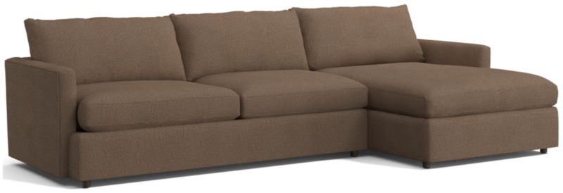 A slim, modern track arm lightens the look and provides maximum sitting space. This sectional sofa comprising a left arm sofa and right arm chaise, is all upholstered in a soft, durable fabric blend formulated to withstand pets and kids. The Lounge Regular 2-Piece Sectional Sofa is a Crate and Barrel exclusive.