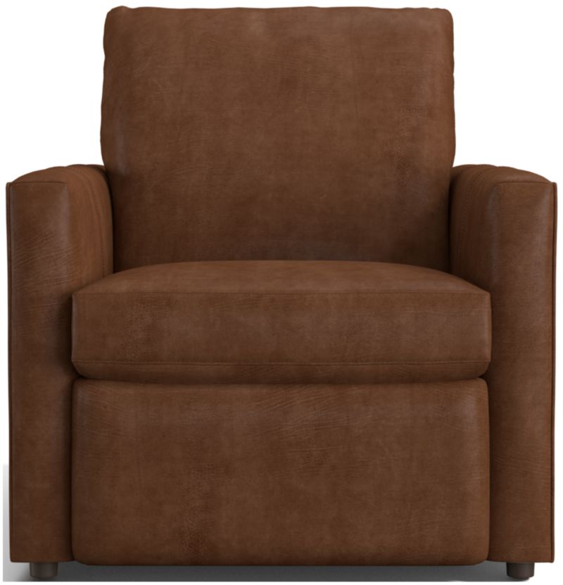 Bestselling Lounge marries modern style with built-to-last durability. The ultimate in comfort, the reclining chair features a relaxing, medium-depth seat and supersoft back cushion that invite curling up and sinking in. Operated with a button on the inside arm, the chair uses "wall-hugging" technology to recline with zero clearance and no space restrictions, allowing you to position the chair right up against a wall if desired. The neatly tailored chair is upholstered in a rustic leather that proudly displays its natural markings. Only a coat of wax is applied to unify the color and lend a smooth finish to a natural leather that will continue to charm as it develops a rich patina over time.