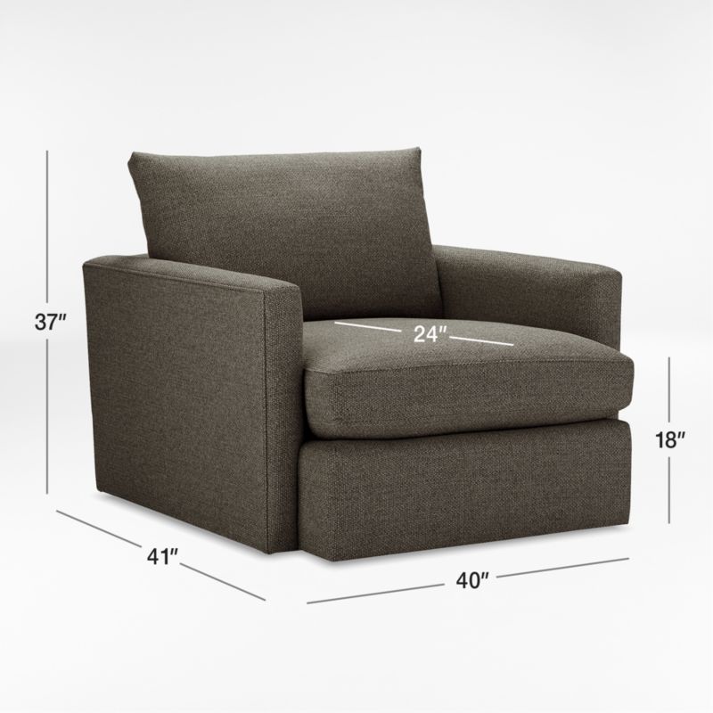 Bestselling Lounge marries modern style with built-to-last durability. Offering a 360-degree sweep of the room, the Lounge swivel chair features a relaxing, medium-depth seat and supersoft back cushion that invite curling up and sinking in. Slim, modern track arms lighten the look and maximize sitting space, making Lounge the perfect place to relax.