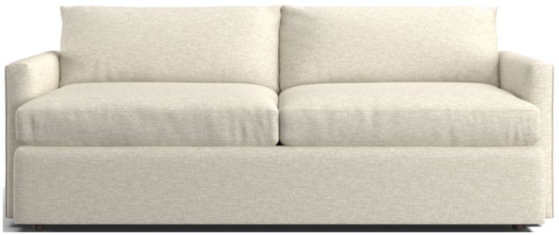 Bestselling Lounge marries modern style with built-to-last durability. The ultimate in comfort, the sleeper sofa features relaxing, medium-depth seats and supersoft back cushions that invite curling up and sinking in. Slim, modern track arms lighten the look and maximize sitting space, making Lounge the perfect place to relax. When it's time to retire, an ultra-comfortable pull-out mattress offers the perfect place to stretch out, with a locking, tilt-up headrest that's great for late-night reading or TV viewing.