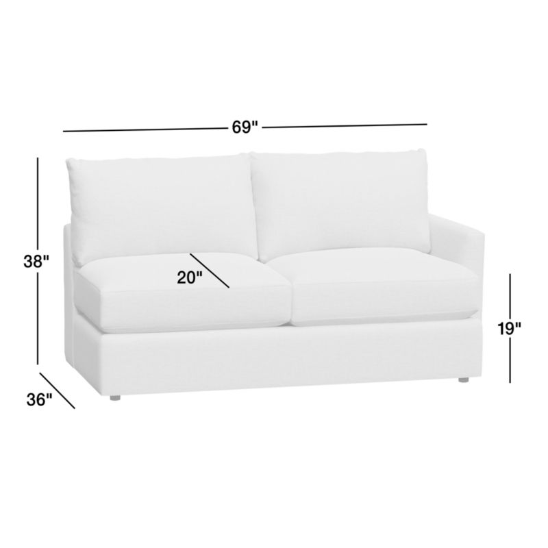 Lounge Classic Leather Right-Arm Apartment Sofa Sectional Piece26"Hheight69"Wwidth36"DdepthMeasurements are in inches.